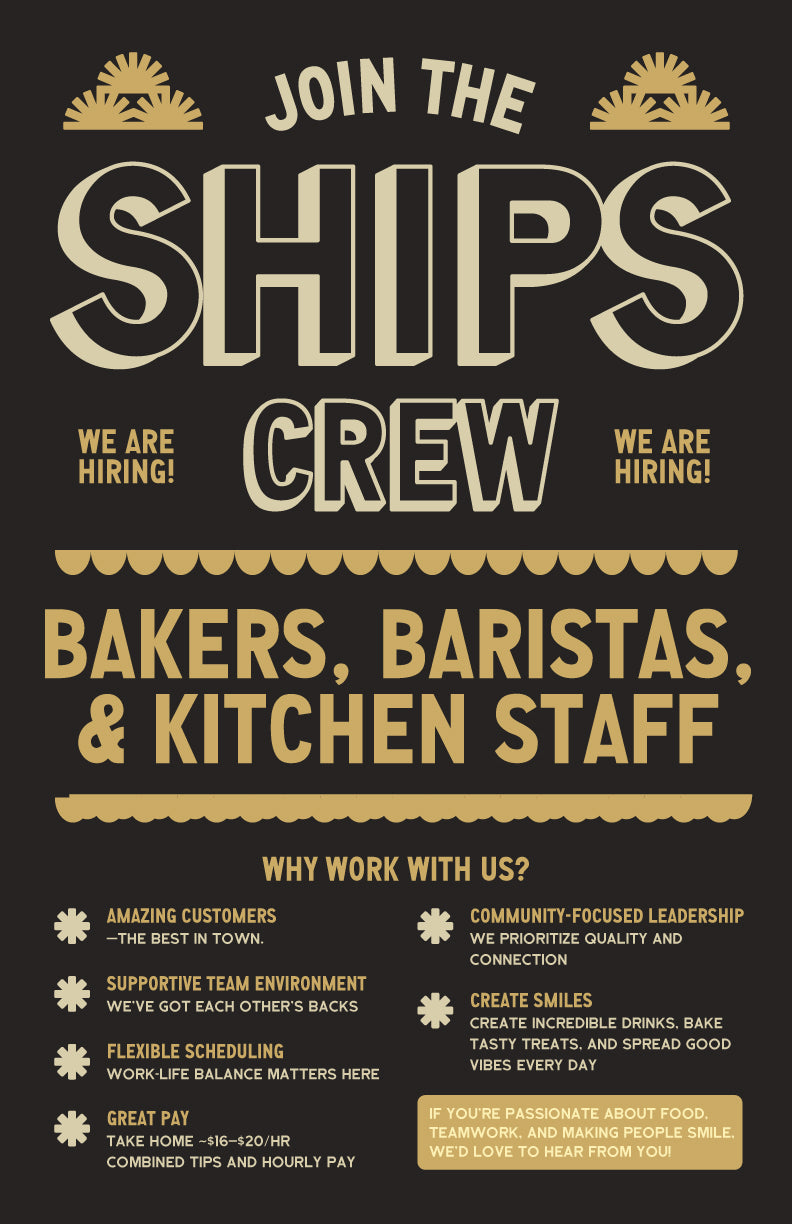 Come bake, brew, and serve with us—flexible scheduling, strong tips, and a supportive team included.